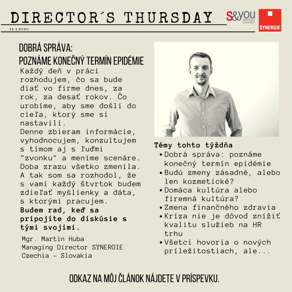 Martin Huba, Managing Director česko-slovenské S&you – SYNERGIE na to má názor. A to podložený fakty a daty.